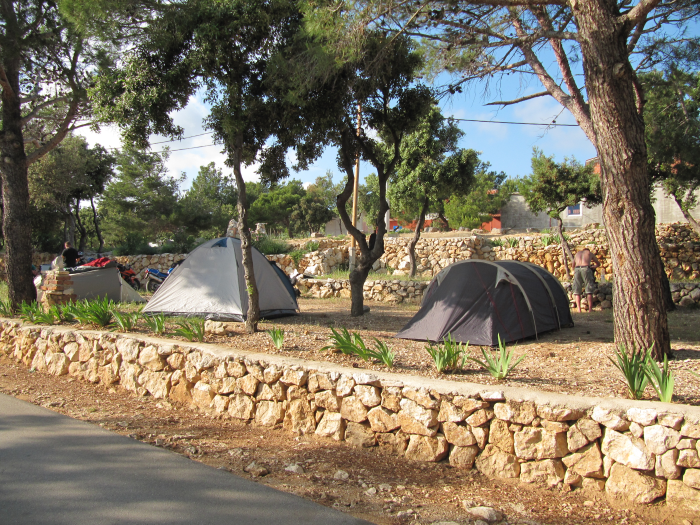 Rudi möchte sich den Campingplatz Simuni hier auf der Insel Pag anschauen, da er hier im Sommer Urlaub mit der Familie machen möchte. Da wir sowieso einen Campingplatz brauchen checken wir gleich dort ein.