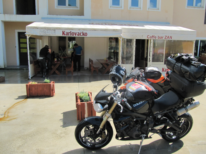 Gut gestärkt ging es dann weiter durch Rijeka, hier gabs dann auch endlich Kettenspray für trockene Ketten. Nach Opatja kamen wir dann an der istrischen Küste in ein Gewitter und dann kam diese Kneipe und wir nutzten diese Gelegenheit zu einer Pause.