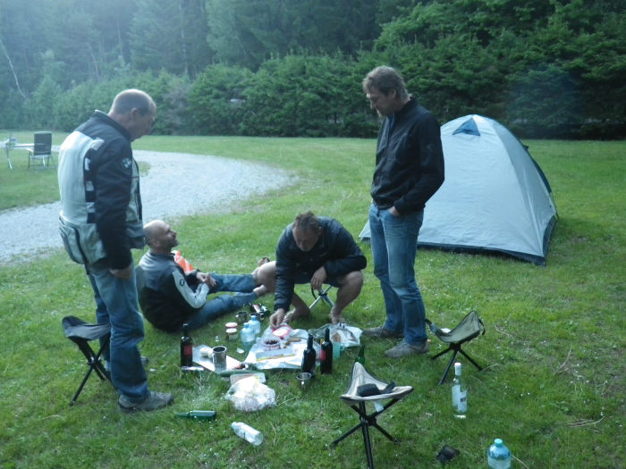Der Campingplatz ist eigentlich noch nicht so richtig offen und daher ist das Restaurant noch geschlossen. Aber das ist kein Problem, der Markus und der Rainer kümmern sich um eine Brotzeit für fünf Personen.