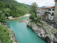 Diese Landschaft an der Soca erinnert an das südliche Tessin in der Schweiz.