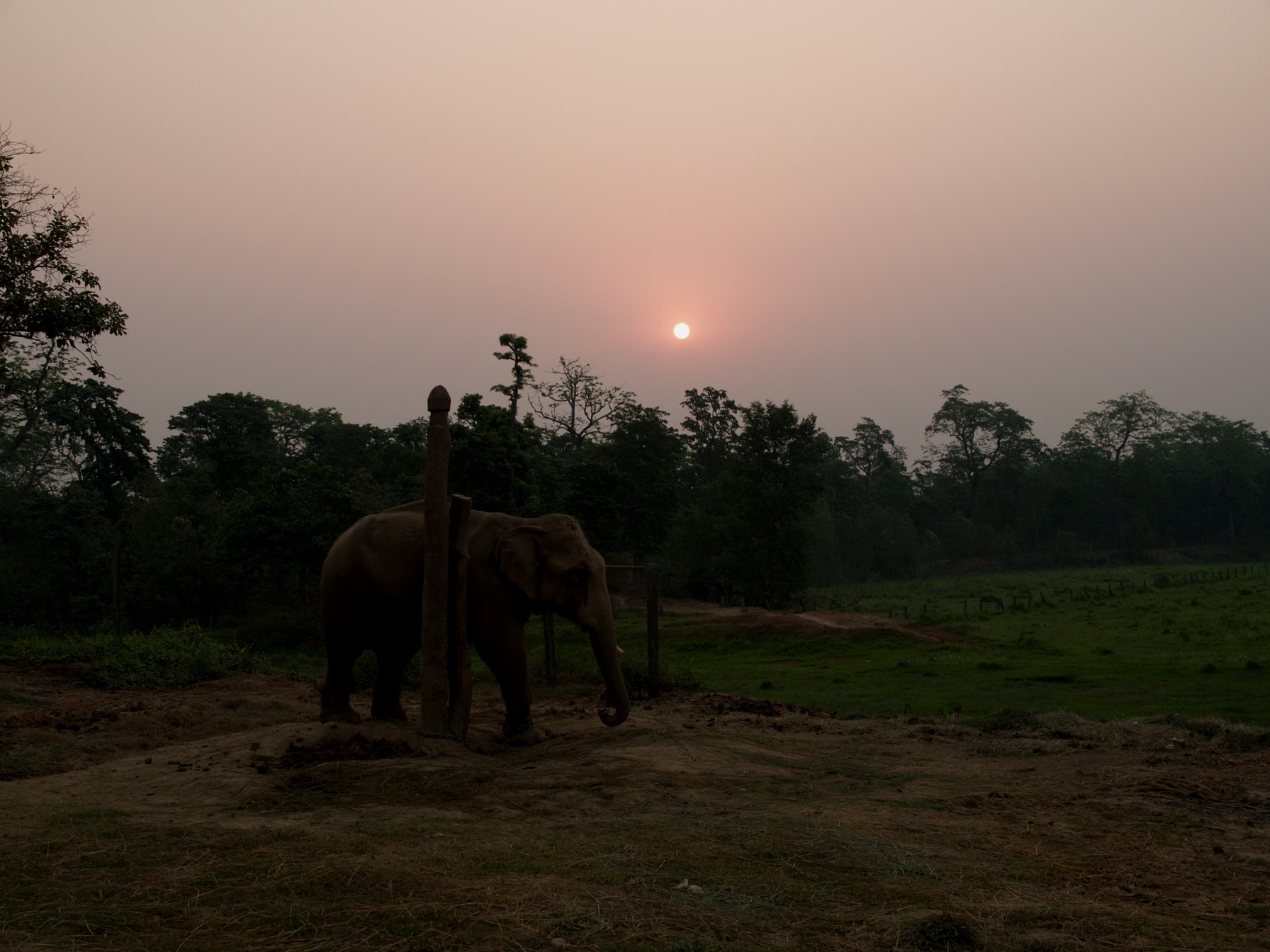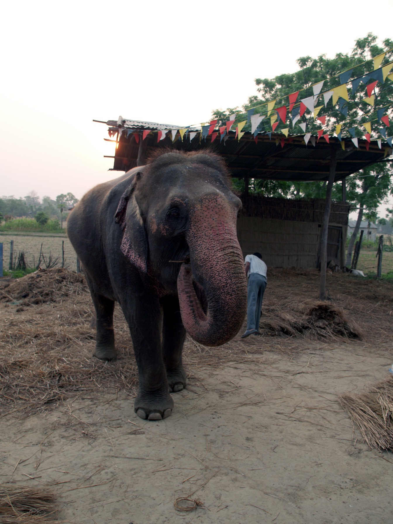 in den Schatten gehen und die Mittagszeit vorüber gehen lassen. Ich finde in der Bücherei ein passendes Buch und suche mir einen schattigen Platz als mich ein junger Nepali mit den Worten anspricht: 'Do you wanna see our elephants?' Und ob ich die sehen will, er bringt mich zu den beiden Elefanten die dem Hotel gehören und er erzählt mir wie sie heißen, wie alt sie sind und was sie den ganzen Tag über zu fressen bekommen. Sie werden jeweils von einem Mahout, dem Elefantenführer und einem Mann der sich nur um das Futter kümmert, versorgt. In der Regel bleiben der Elefant und der Mahout ein Leben lang zusammen, der Mahout hat sogar sein Bett neben dem Schlafplatz des Elefanten stehen.