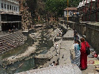 wird Shiva als Pashupati, Gott des Lebens verehrt. Die Tempelanlage liegt am heiligen Fluss Bagmati etwa sechs Kilometer östlich von Kathmandu. Der eigentliche Tempel ist nur für Hindus zugänglich, der äußere Tempelbezirk darf hingegen von jedermann betreten werden. Da der Bagmati direkt in den für Hindus heiligen Fluss Ganges fließt ist es für sie erstrebenswert, nach dem Tode hier verbrannt zu werden und daß dann die Asche vom Bagmati zum heiligen Ganges getragen wird. Ich werde Zeuge einer solchen Verbrennung und es ist zu sehen, daß diese Menschen mit dem Tod anders umgehen als wir. Hier ist der Tod nach dem hinduistischen und buddhistischen Glauben ganz einfach der Start in ein
