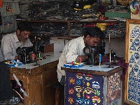 Die Zeitung 'Nepal New's' ist natürlich in Englisch, aber mittlerweile denke ich sogar englisch und das nach vier Wochen. Es ist schon erstaunlich wie man sich anpasst, wenn man dazu 'gezwungen' wird. Am Nachmittag treffe ich dann wieder Dorche und wir besuchen einen Freund von ihm, den wir schon ein paar Mal getroffen habe. Er hat einen kleinen Laden und bestickt mit seinen Nähmaschinen hauptsächlich T-Shirts. Hier wird so ein Motiv nicht gedruckt, nein es wird mit der Maschine gestickt und das in so vielen Farben wie nötig. Diese T-Shirts sehen klasse aus. Ich bestelle 7 Stück und auf meine Frage wie lange es dauert bekomme ich zur Antwort: 'I dont know, when we have power we are ready in maybe 1 hours'. Dieses 'maybe' ist hier in Nepal