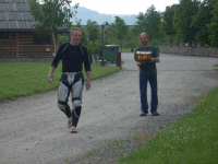 Weil der Weg zum Bier holen Heute ein bisschen weiter ist als sonst, braucht der Rainer eine Tragehilfe. Er sucht sich den Markus und sagt: "Jetzt geh weida kloana, nacha zoag i dia wia as Bier hoin geht". Wie man sieht hat er hier einen lernfähigen Schüler gefunden.