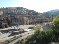 Die Strasse, immer noch eine 'Strada bianco', führt uns vorbei an alten Industriedenkmäler, wie eine Waschanlage für Erz, weiter nach Ingurtosu. Etwa 100 Jahre wurden in Ingurtosu Blei, Zink und Silber abgebaut. Als sich der Abbau in den 1960er Jahren nicht mehr lohnte, wurde die Mine geschlossen. Die Einwohner verließen den Ort, der zusehends verfiel.