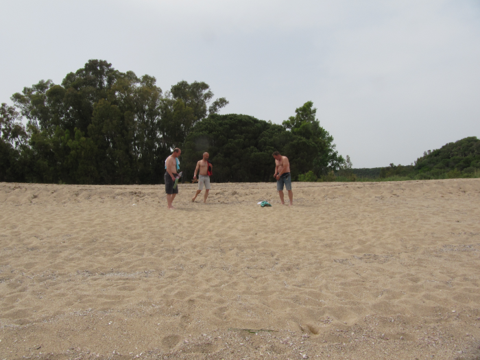 In Bari Sardo an der Costa Rei ist dann Schluss für heute. Es ist zwar erst 13:30 Uhr aber bei 35 Grad macht Moped fahren einfach keinen Spass. Wir suchen uns einen Campingplatz und genießen ein kühles Bad im Meer. Und weil heute ganz zufällig auch noch Vatertag ist geht es nach dem Bad an die Bar und dann noch in die Kneipe.