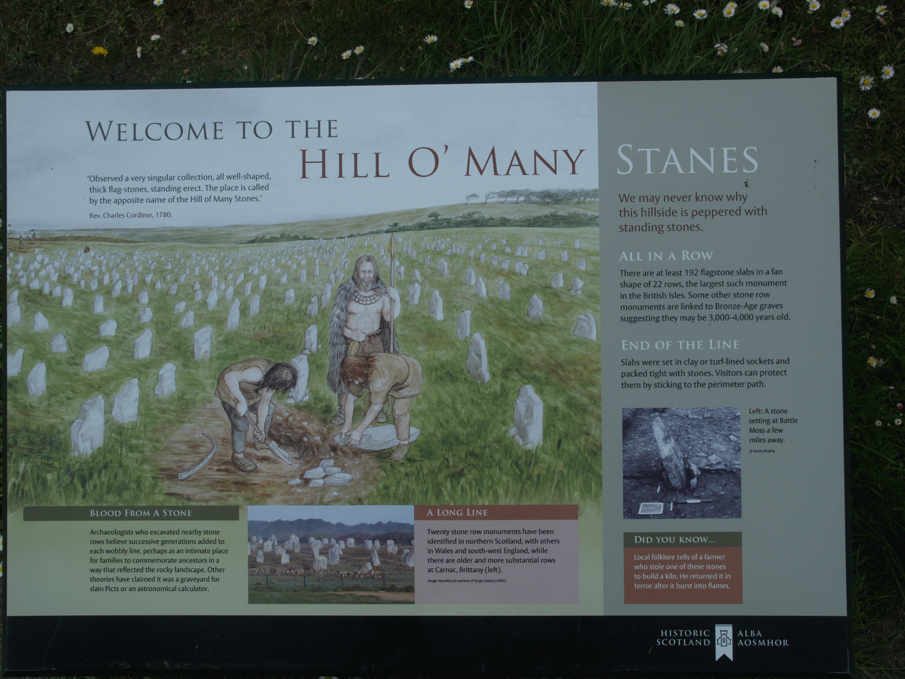 Es geht nun endgültig Richtung Süden. Die Landschaft ändert sich, die Wiesen werden saftiger und man sieht wieder mehr Kühe als Schafe auf den Weiden. Die Gegend ist auch dichter besiedelt. Nach kurzer Zeit steht an der Straße ein Wegweiser zu einer megalithischen Steinsetzung, dem 'Hill o' many Stones'. Mann weiß bis heute nicht was diese Steinsetzung für eine Bedeutung hatte, aber es klingt interessant und so schauen wir uns das Ganze an. In Brora besuchen wir dann die 'Clynelish and Brora Distillery'. Hier wird seit 1819 feinster Malt Whisky erzeugt. Wir nehmen an einer sehr interessanten Führung Teil und dürfen natürlich am Ende der Führung einen 14 Jahre alten Malt Whisky probieren. Unser Guide schenkt großzügig ein und es schmeckt ohne Ende, mir zumindest! Ich kaufe eine Flasche.