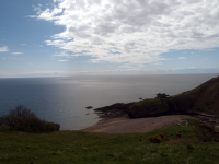 Die Landschaft wird sanfter, sandige Buchten, grüne Wiesen und blühender Ginster und immer der Blick auf's Meer. Aber auf den Straßen ist auch deutlich mehr Verkehr.