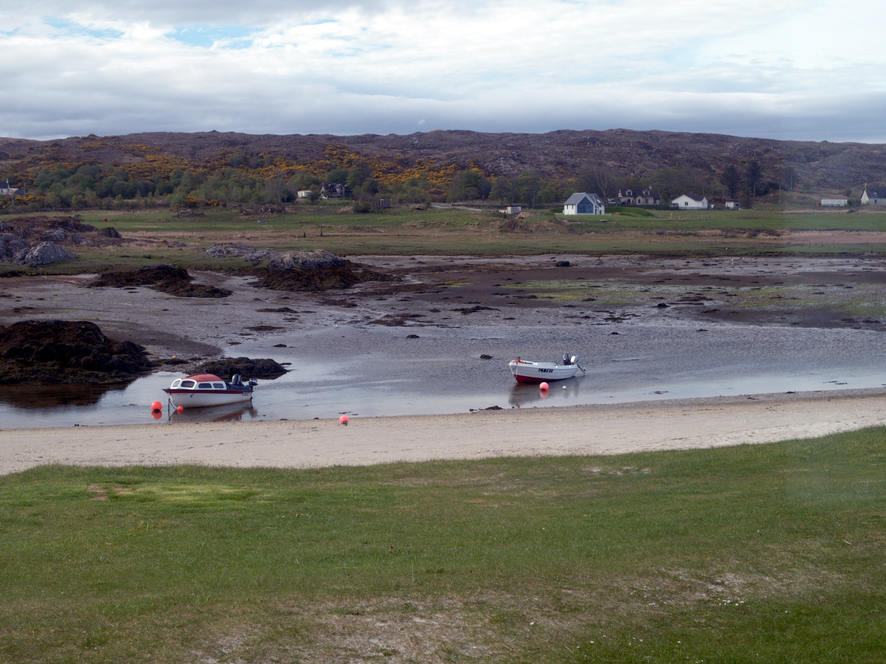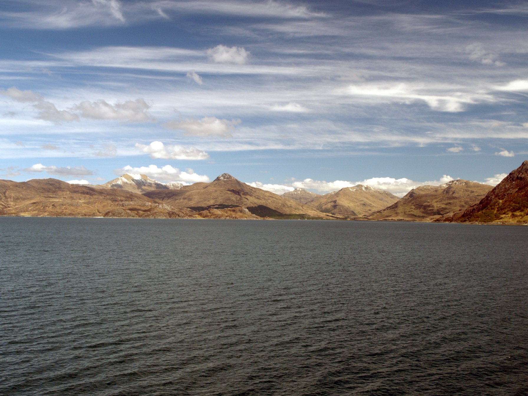 In der Früh ist der Sturm vorüber und am Himmel sind nur noch Schleierwolken und in der Bucht vor uns ist kaum noch Wasser, es ist Ebbe. Nach dem Frühstück packen wir unsere Sachen wieder ein und es geht in Richtung Malleigh zur Fähre auf die Isle of Skye. Malleigh ist ein Fischereiort, hier wurden mal die meisten Krabben in Europa gefischt und verladen, aus diesem Grund hat man dann im neunzehnten Jahrhundert eine Eisenbahnlinie gebaut. Auf dieser Linie fährt im Sommer einmal am Tag von Fort William nach Malleigh ein Dampfzug, der Jacobite Steamtrain.