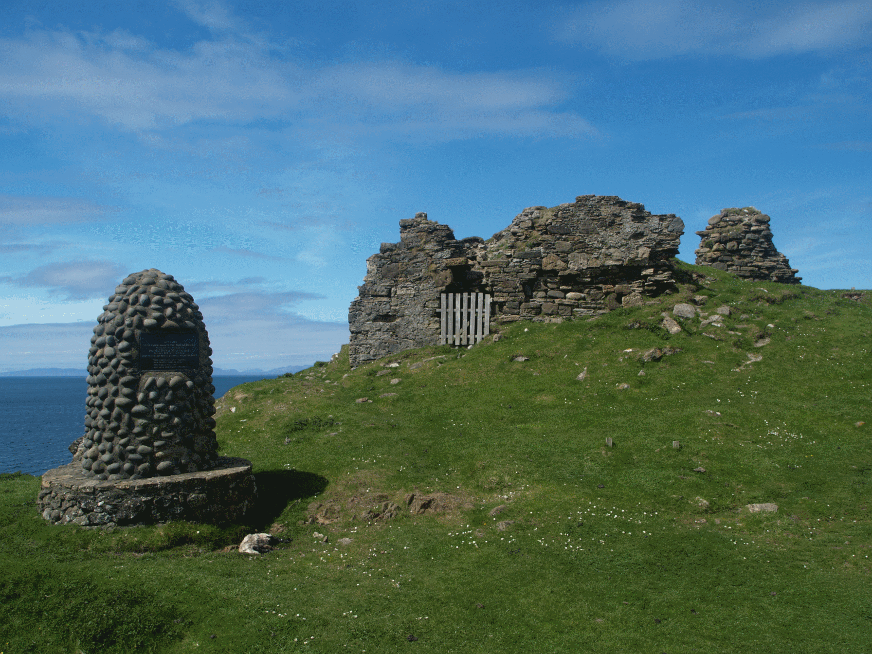 Später kommen wir dann noch im Nordosten von Skye an der uralten Ruine von Dulumtum Castle vorbei.