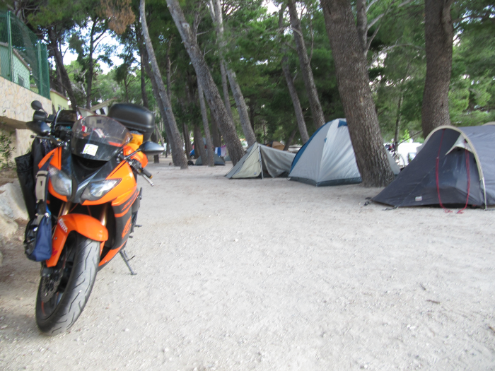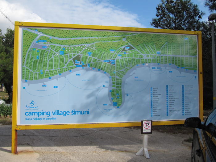 Rudi möchte sich den Campingplatz Simuni hier auf der Insel Pag anschauen, da er hier im Sommer Urlaub mit der Familie machen möchte. Da wir sowieso einen Campingplatz brauchen checken wir gleich dort ein.