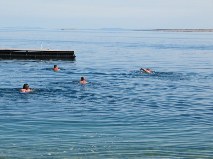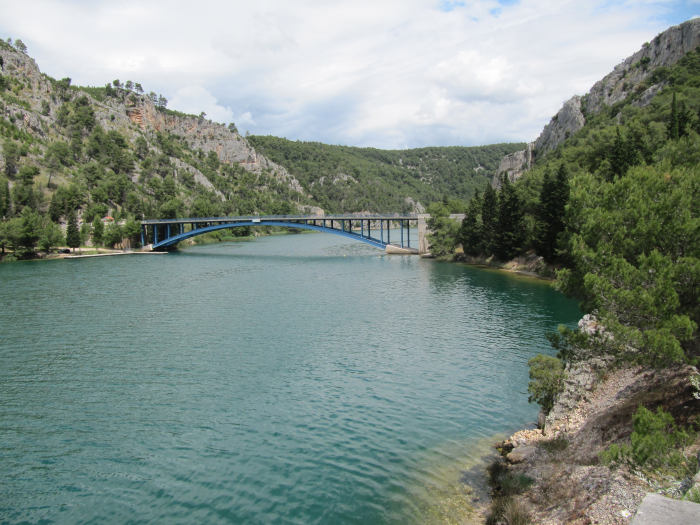 Hier haben wir die Krka unterhalb der berühmten Wasserfälle. Zuerst dachten wir, die schauen wir an, dann haben wir es aber doch gelassen. Man braucht für eine Besichtigung mindestens einen halben Tag und einige von uns waren ja schon mal dort.