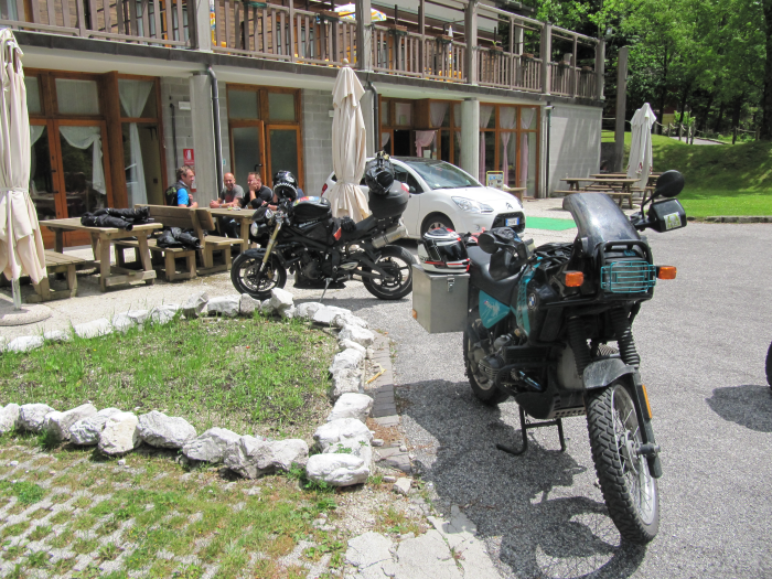 Jetzt stehen die Zeichen auf Urlaubsende. Hier sind wir auf dem Weg Richtung Slowenien. Es wird Zeit daß hier irgendwo eine Kneipe für ein kurzes Frühstück auftaucht.