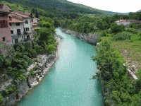 Diese Landschaft an der Soca erinnert an das südliche Tessin in der Schweiz.