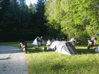 Aber dann, zack ist die Sonne hinter den Bergen verschwunden und uns wird ganz schnell bewußt, daß der Campingplatz auf 1300 Meter Meereshöhe liegt. Ohne Sonne wird es empfindlich kalt und da haben wir halt die Jacken ausgepackt und weiter gegessen.