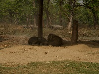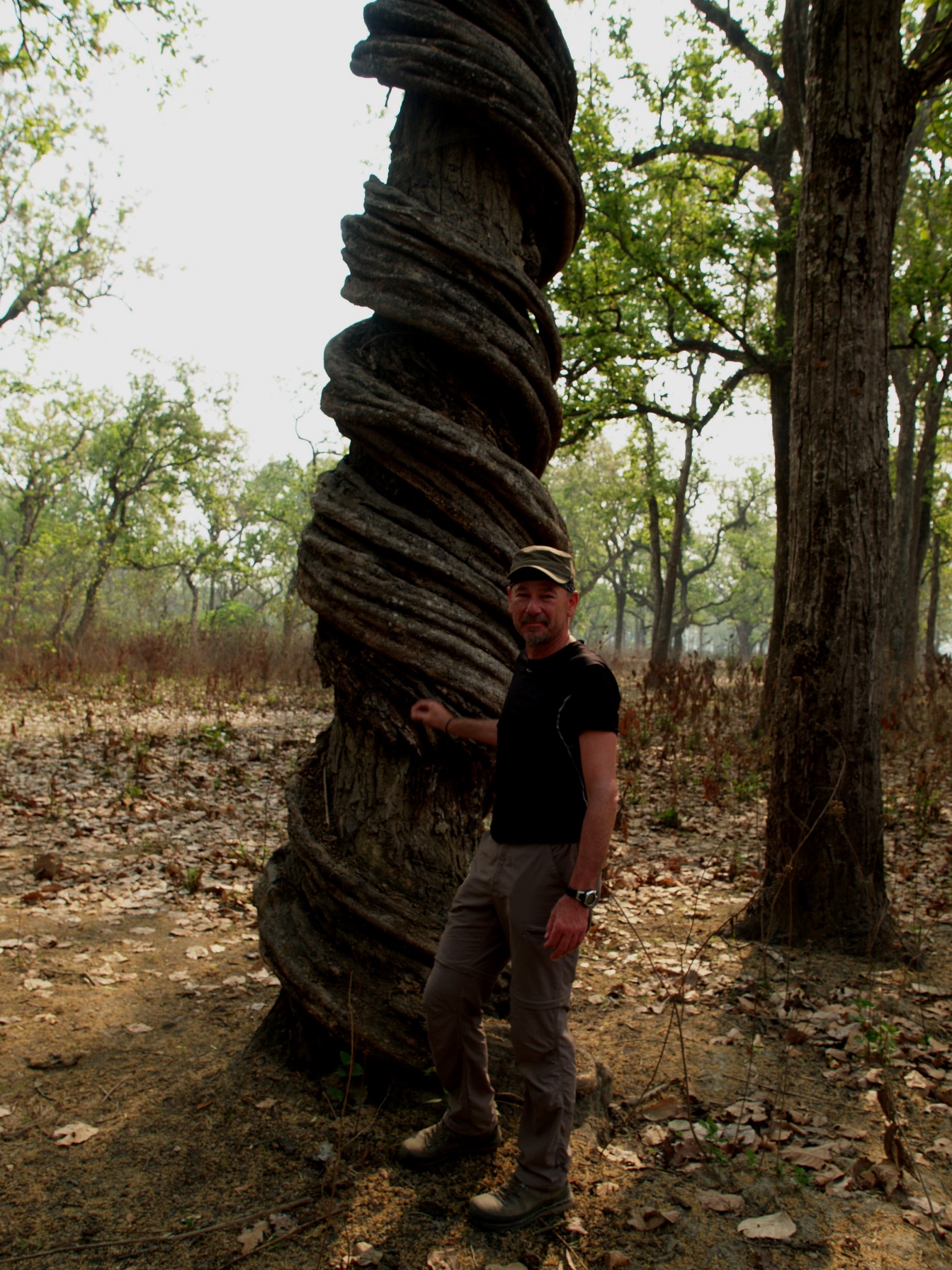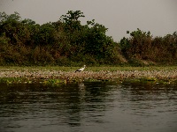 Affen und jede Menge exotische Vögel wie Marabus, Papageien und Geier. Irgendwann verlassen wir dann das Boot und gehen zu Fuß zurück nach Sauraha. Wir kürzen den Flusslauf einfach ab. An einer Stelle wird Gopal sichtlich nervös, hier war vor kurzer Zeit ein Nashorn und wir nehmen einen anderen Weg, denn er möchte zu Fuss keinem Nashorn begegnen. Gopal ist ein Freund der Tiere und der Natur überhaupt. Er spricht ein ausgezeichnetes Englisch und er ist ein sehr angenehmer Mensch. Er zeigt uns Temitenbauten, Höhlen von Boas, Affen und er erklärt sehr gut, wie hier die Natur funktioniert. Auch daß es im Park ca. 20 Tiger und mehrere Leoparden gibt, die aber tagsüber nie zu sehen sein werden.