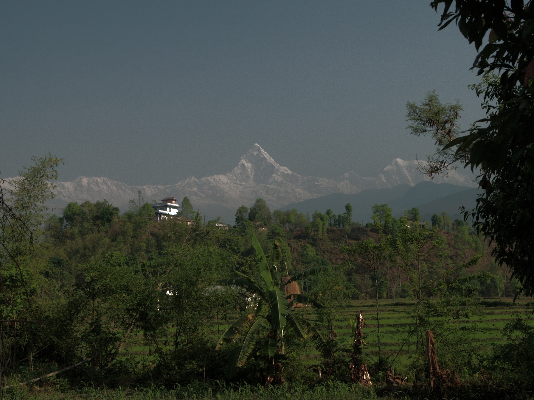 Wieder Frühstück im Garten des Annapurna-View Hotels. Ich entscheide mich heute für Spiegelei mit Bratkartoffel, Tee und Mango-Lassi. Ich sehe noch, wie der Ober das Hotel auf einem Fahrrad verläßt und kurz darauf mit einer Tüte voller Mangos wieder zurück kommt. Bei uns hätte es geheißen Mango ist aus, aber hier holt einer ganz einfach frische Mangos, Respekt. Lucia kommt auch zum Frühstück und erzählt, daß es Pavel immer noch nicht besser geht und daß sie heute mit dem Touristenbus nach Kathmandu fahren. Aus der Besichtigung der Königsstädte im Kathmandu-Tal ist für die Beiden leider nichts geworden, sie müssen schauen, daß sie ihren Flieger zurück in die Heimat bekommen. Nach dem Frühstück verabschieden wir uns, für die zwei geht es nach Hause und für mich geht es nach Chitwan.