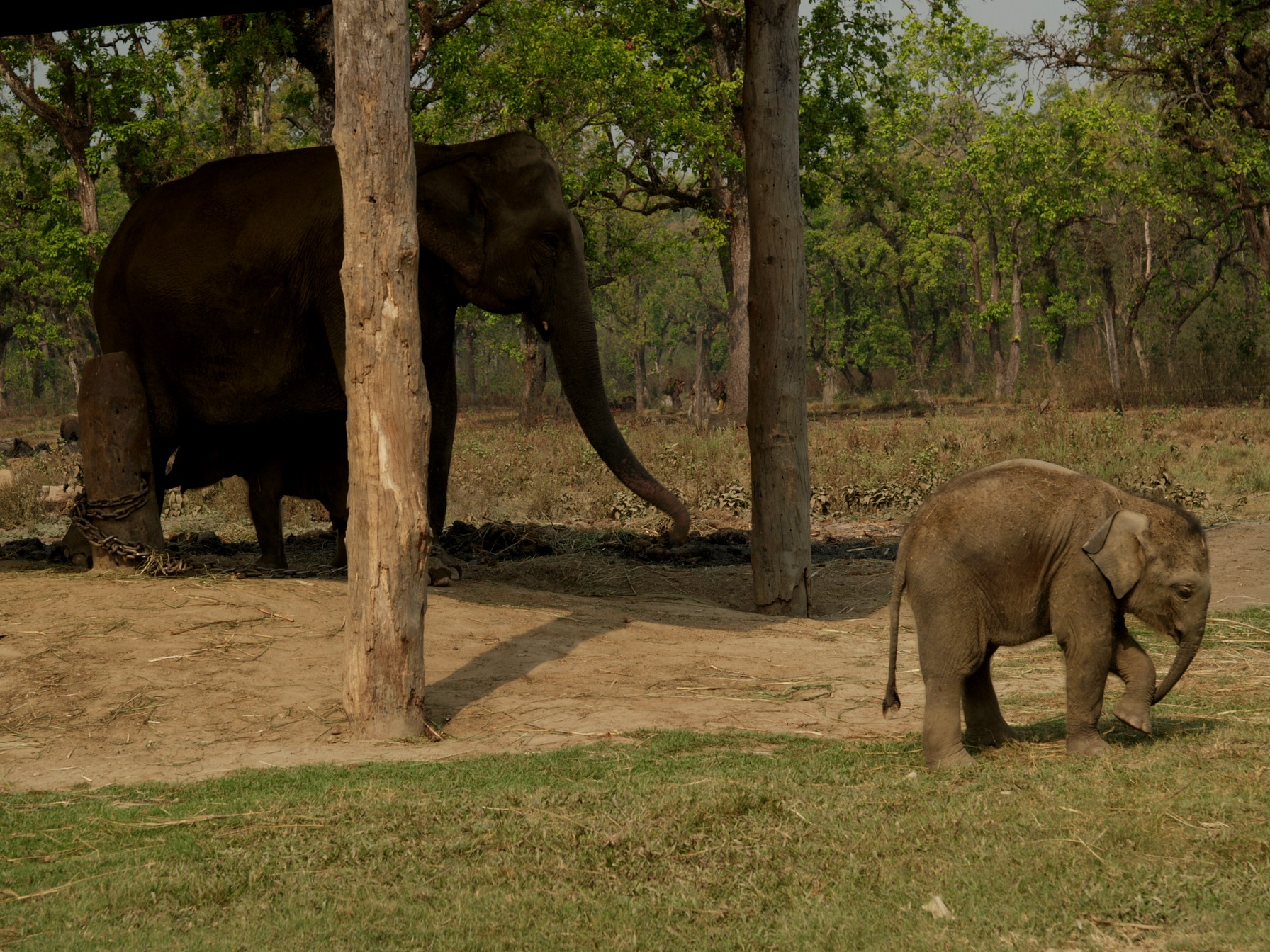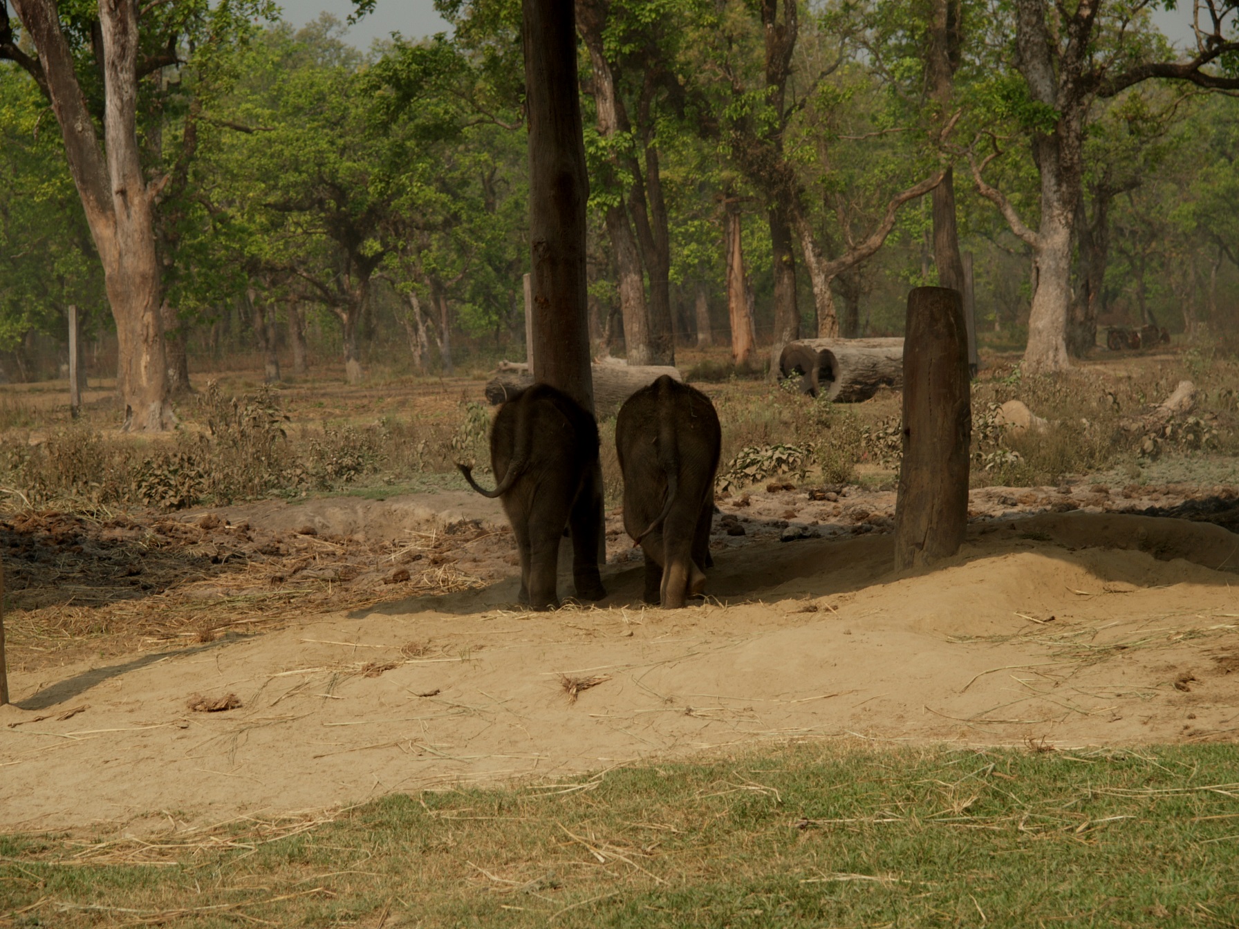 in den Schatten gehen und die Mittagszeit vorüber gehen lassen. Ich finde in der Bücherei ein passendes Buch und suche mir einen schattigen Platz als mich ein junger Nepali mit den Worten anspricht: 'Do you wanna see our elephants?' Und ob ich die sehen will, er bringt mich zu den beiden Elefanten die dem Hotel gehören und er erzählt mir wie sie heißen, wie alt sie sind und was sie den ganzen Tag über zu fressen bekommen. Sie werden jeweils von einem Mahout, dem Elefantenführer und einem Mann der sich nur um das Futter kümmert, versorgt. In der Regel bleiben der Elefant und der Mahout ein Leben lang zusammen, der Mahout hat sogar sein Bett neben dem Schlafplatz des Elefanten stehen.