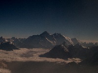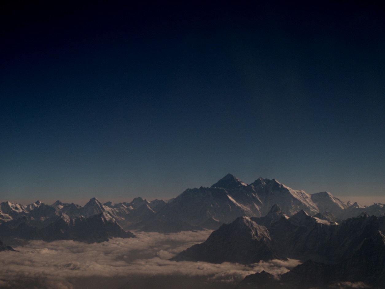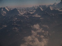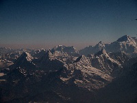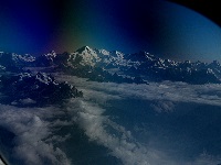 Mit der Stewardess ergeben sie ein komplettes Frauenteam. Die Stewardess teilt Blätter mit dem Profil der Himalayakette aus und sie erklärt jedem der es wissen will die Berge. Während des Fluges darf dann jeder in die Pilotenkabine um dann das Ganze durch die rundum verglaste Pilotenkabine betrachten zu können. Da ich ganz hinten sitze, habe ich zwischendurch schon das Gefühl nicht an die Reihe zu kommen aber ich genieße auch so den spektakulären Blick auf all diese schneebedeckten 6000er, 7000er und 8000er. Irgendwann komme ich dann dran, auf dem Weg in die Kabine strahlt mich die Stewardess an und meint: 'You have the luck to see Qomolangma from face to face'. Qomolangma ist der tibetische Name für