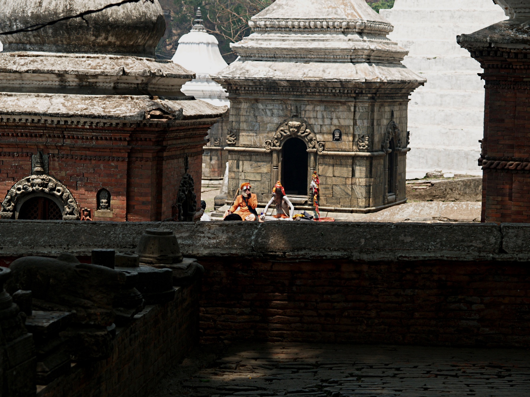 wird Shiva als Pashupati, Gott des Lebens verehrt. Die Tempelanlage liegt am heiligen Fluss Bagmati etwa sechs Kilometer östlich von Kathmandu. Der eigentliche Tempel ist nur für Hindus zugänglich, der äußere Tempelbezirk darf hingegen von jedermann betreten werden. Da der Bagmati direkt in den für Hindus heiligen Fluss Ganges fließt ist es für sie erstrebenswert, nach dem Tode hier verbrannt zu werden und daß dann die Asche vom Bagmati zum heiligen Ganges getragen wird. Ich werde Zeuge einer solchen Verbrennung und es ist zu sehen, daß diese Menschen mit dem Tod anders umgehen als wir. Hier ist der Tod nach dem hinduistischen und buddhistischen Glauben ganz einfach der Start in ein