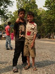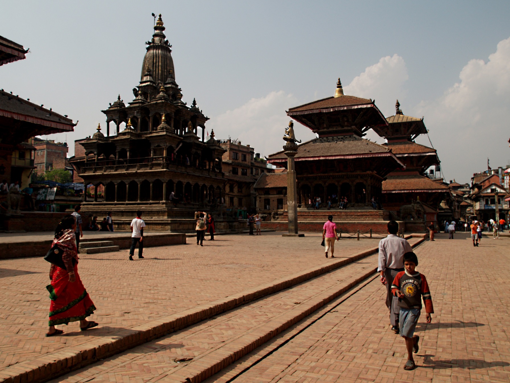 ein geflügeltes Wort. Die T-Shirts sind fertig geworden, sie sehen gut aus und haben pro Stück 2 Euro gekostet. Weiter geht es zum 'Durbar Square', einer weiteren Königsstadt mitten in Kathmandu. Diese Königstadt ist mehr als 1000 Jahre alt, bei uns wäre das alles ein Museum und abgesperrt. Hier ist Leben inmitten dieser Tempel und Paläste aus alten Zeiten. Und dann passiert es Dorche, einem Mann der sehr peinlich auf seine Schuhe achtet, daß er in einen Haufen Hundedreck tritt. Sein Gesicht verzerrt sich, und ich sage zu ihm im Spaß er soll doch seinen Schuhe am Fell einer Kuh die hier so ganz einfach rum liegen saubermachen. Er schaut mich an zwinkert und sagt: 'My life should not end at the next tree by hanging of a Hindu'.