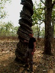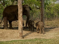 Irgendwann kommen wir dann zur Elefantenaufzuchtsstation. Kaum sind wir da, sind die beiden Lehrerinnen fort und Gopal zeigt mir noch einen riesigen Termitenbau. Er kann es nicht verstehen, daß alle Touristen nur die kleinen Elefanten sehen wollen, wo doch Termiten genauso ein Teil der Schöpfung sind. Wobei diese kleinen Elefanten schon etwas Besonderes sind, da ist zum Beispiel ein Zwillingspärchen mit einem halben Jahr. Bei uns im Tierpark wäre das eine Sensation aber hier ist das ganz normal und es ist nicht mal ein Zaun zwischen den Besuchern und den Elefanten, einzig die Mutter hat eine Kette um einen Fuß. Gopal erklärt auch, daß die Ausbildung der Elefanten sehr lange dauert und auch sehr hart ist.
