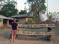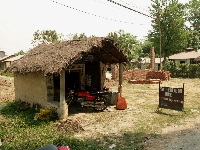 Passagieren der gemütlich auf der Strasse trottet und es ist so normal, als ob man bei uns einen Bus mit Fahrgästen sehen würde. Im Hotel werde ich sehr freundlich aufgenommen und man erzählt mir, daß der Besitzer ein Deutscher sei und daß es zum Frühstück deutschen Kaffee gibt. Ich beziehe ein tolles Zimmer und dann gibt es auch schon Mittagessen. Dannach lerne ich Gopal kennen, einen Mann, der sich um die Gäste kümmert und der hier jeden Baum, Strauch und jeden Vogel kennt. Er sagt mit, daß er mich so gegen 16:00 Uhr zu einer Führung durch das Dorf und den angrenzenden Dschungel abholen wird und er meint ich soll doch