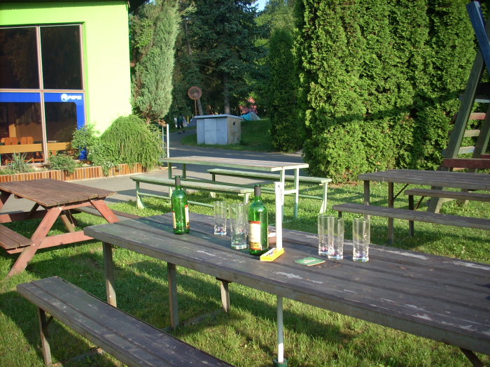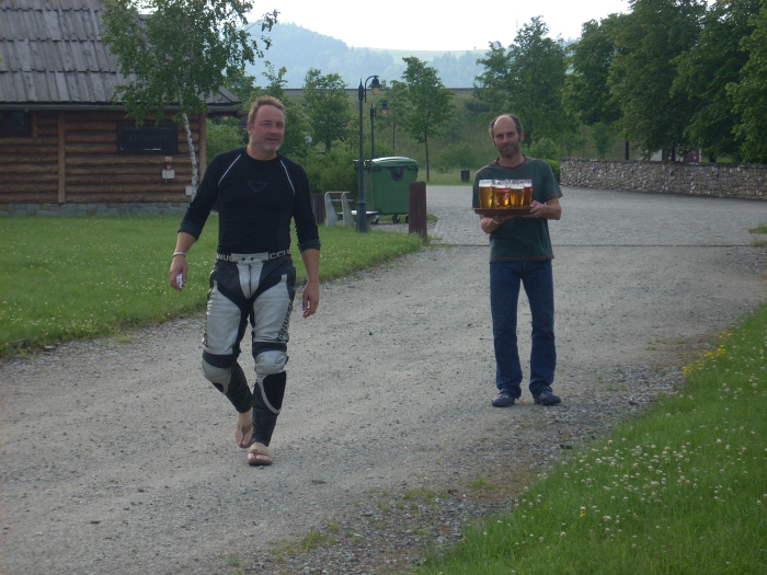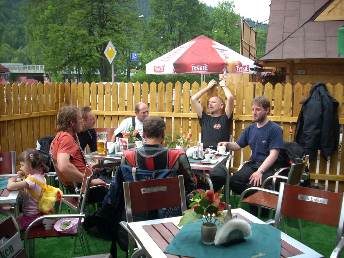 Das Abendessen war echt Klasse und der vom Ober ausgegebene Becherovka auch. Hier diskutiert die Gemeinde über die Hose, die sich der Björn Heute gekauft hat.Der Rainer meint, egal was die gekostet hat, die haben ihn ordentlich beschissen!