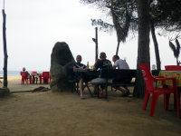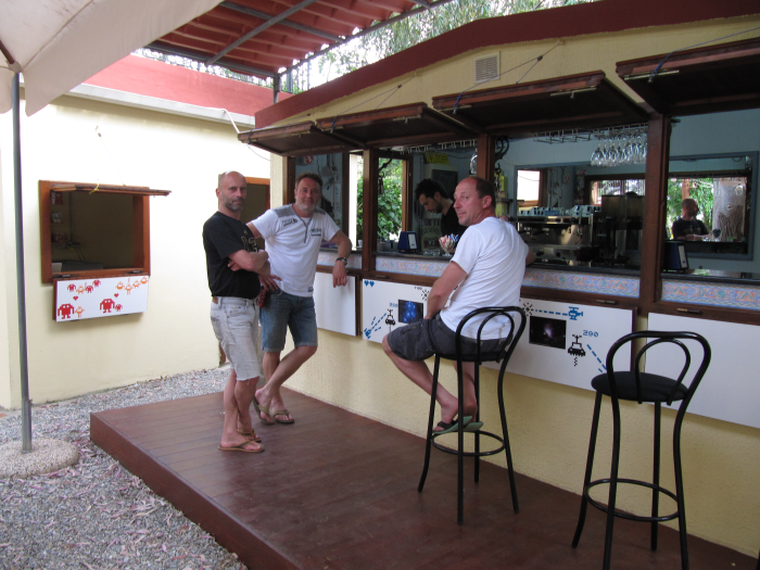 In Bari Sardo an der Costa Rei ist dann Schluss für heute. Es ist zwar erst 13:30 Uhr aber bei 35 Grad macht Moped fahren einfach keinen Spass. Wir suchen uns einen Campingplatz und genießen ein kühles Bad im Meer. Und weil heute ganz zufällig auch noch Vatertag ist geht es nach dem Bad an die Bar und dann noch in die Kneipe.