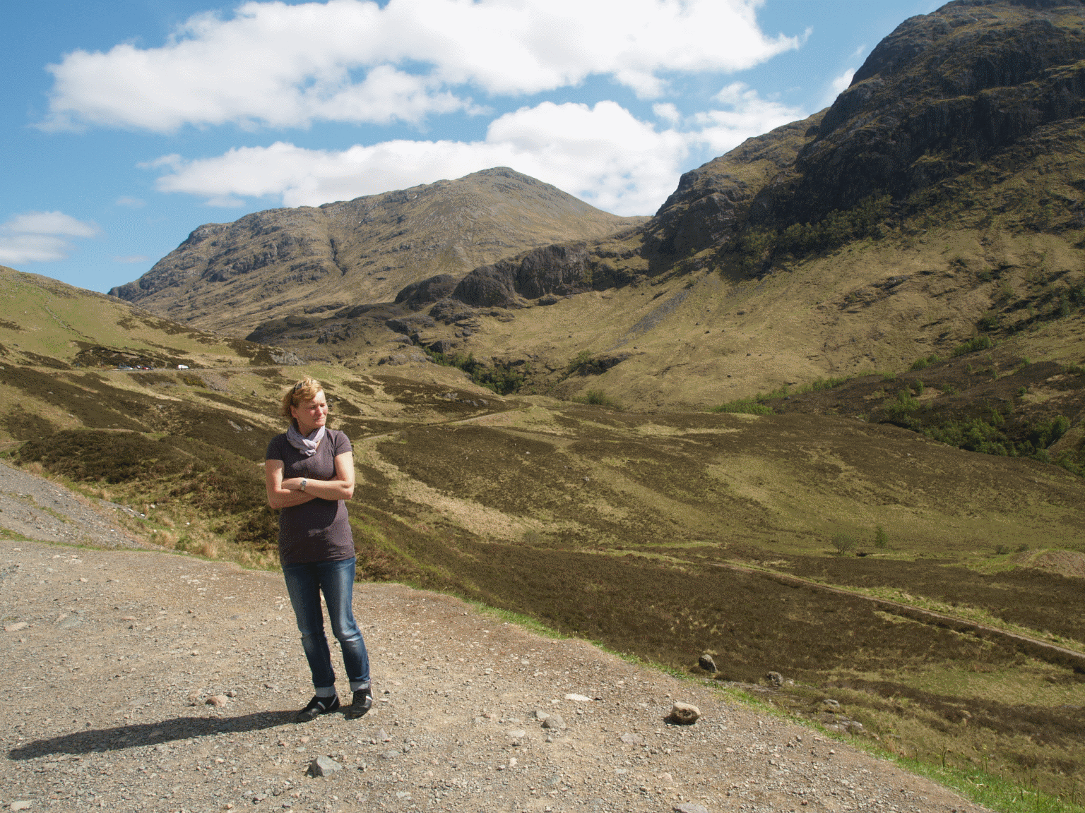 Gegen Mittag kommen wir dann wieder nach Fort William und weiter geht es über Ballachulish ins Glen Coe. Einem landschaftlich sehr schönem Tal, das schon Kulisse für mehrere Filme war, zuletzt für James Bond in Skyfall. Bekannt ist das Tal auch wegen des Massakers am Clan der MacDonald im Februar 1692. Dabei wurden mehr als 40 Männer, Frauen und Kinder von Schärgen des englischen Königs ermordet und viele andere flohen in die winterlichen Berge. Die Landschaft des Glen Coe ist umwerfend und nach jeder Kurve schaut es anders aus.