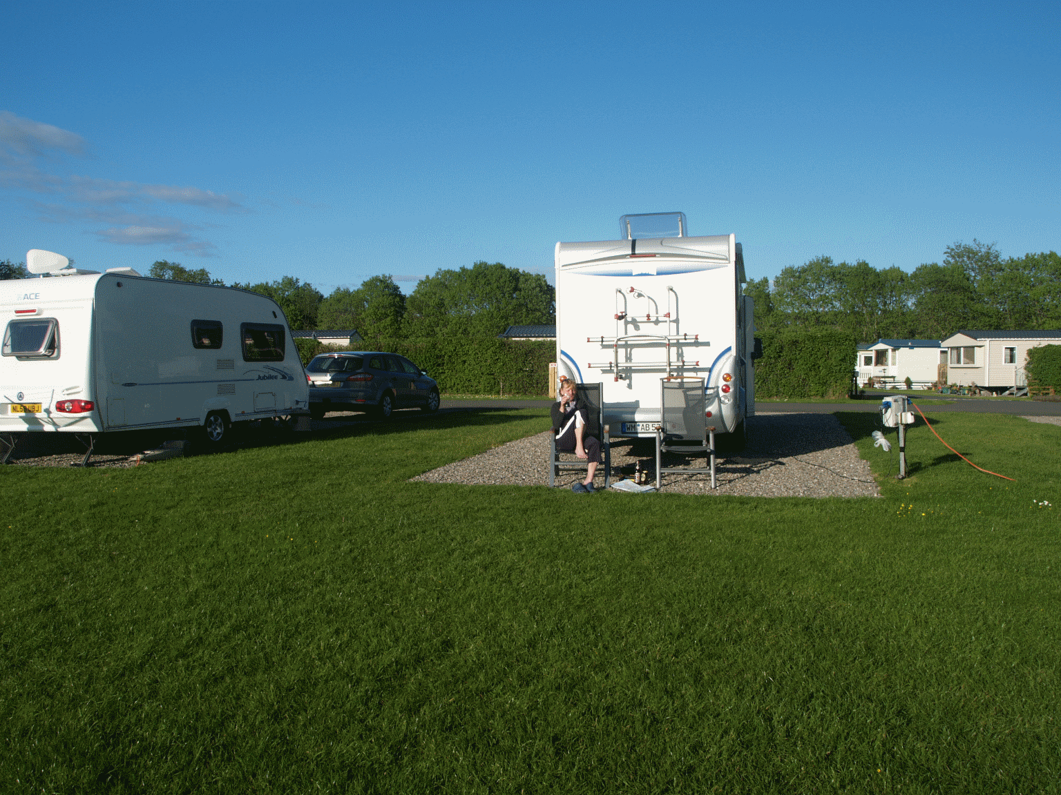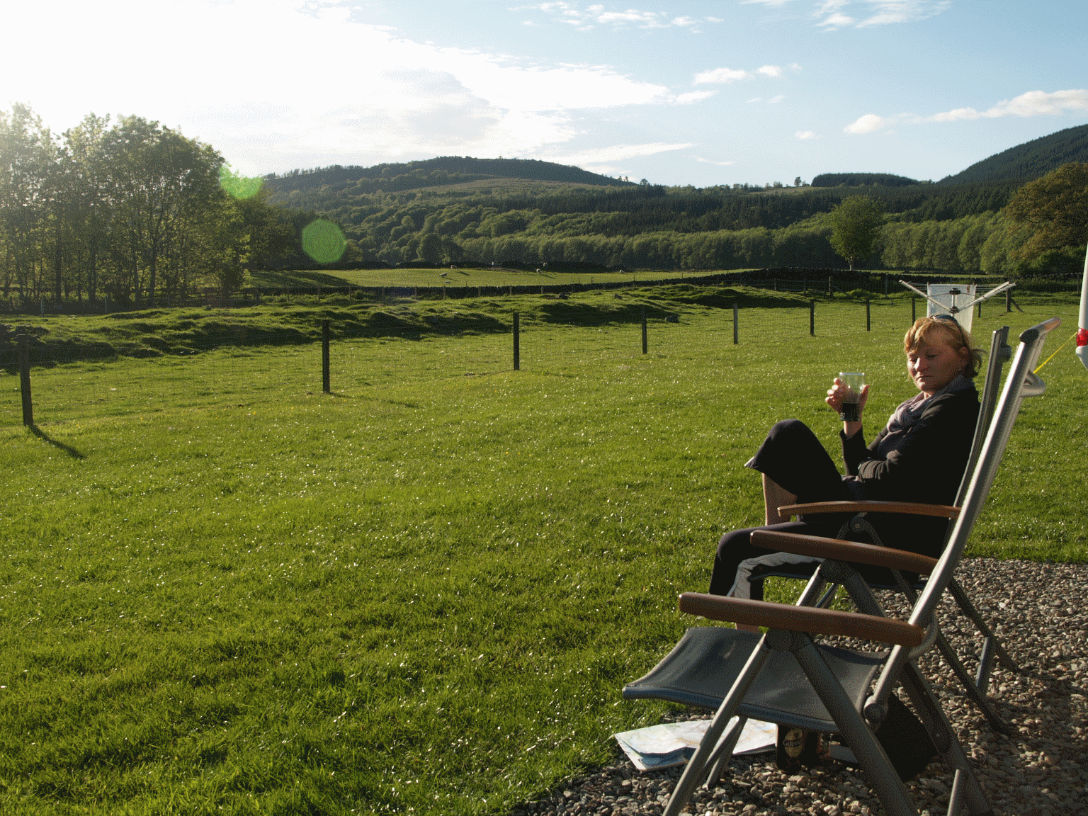 Wir kommen in die Landschaft von Trossachs, die schon zum Ende des 19. Jh. Bei den ersten englischen Reisenden sehr beliebt war. In Callander finden wir einen Campingplatz und von der Frau an der Rezeption werde ich mit einem 'Hello Sir, what for an wonderfull afternoon' begrüßt, das finde ich auch! Dieser Campingplatz ist der erste auf unsere Reise, der nicht am Wasser liegt, dafür grasen neben unserem Wohnmobil die Schafe.