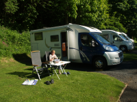 Wir starten unser Wohnmobil und es geht zum letzten Campingplatz unserer Reise nach Melrose. Dort wollen wir uns Morgen noch die Ruinen der Abbey anschauen bevor es nach Hause geht. Leider ist der kleine Campingplatz mitten in Melrose voll, aber der Wardener am Eingang gibt mir einen Zettel auf dem alle Campingplätze in der Nähe stehen, super nett und freundlich. Wir versuchen es im 15 km entfernten Jedburgh und haben Glück, am Ortsanfang finden wir auf dem Platz vom Caravan und Campingclub einen Stellplatz.