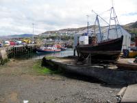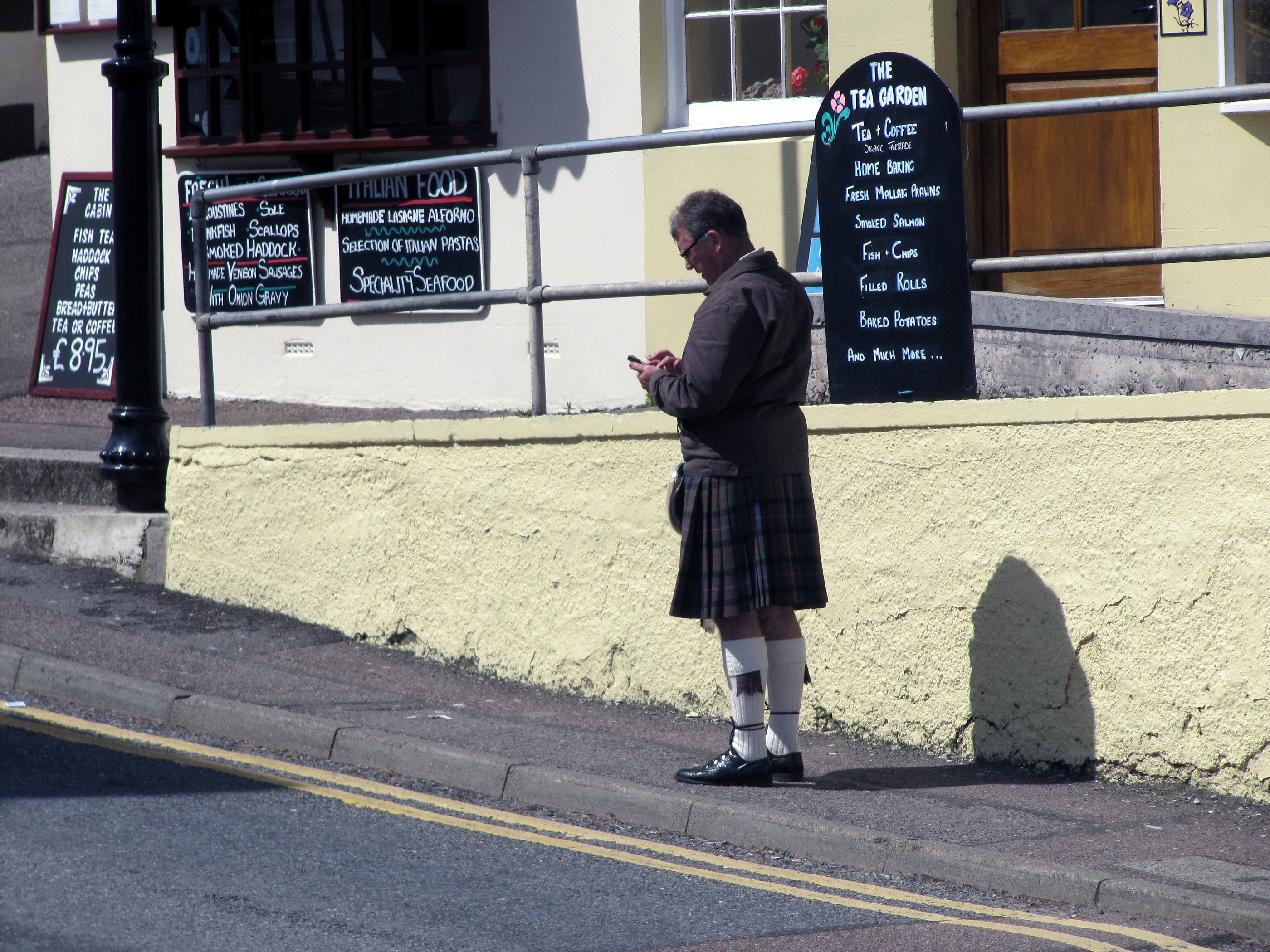 In Malleigh kümmern wir uns erstmal um die Tickets für die Fähre, wir bummeln ein bisschen und sehen auch den ersten schottischen Herrn im Kilt. Im 'The Cabins' kaufen wir uns dann unsere erste Portion Fish and Chips, es wird jede Portion frisch gemacht und so sitzen wir dann in der Sonne und genießen dieses englische Fastfood.