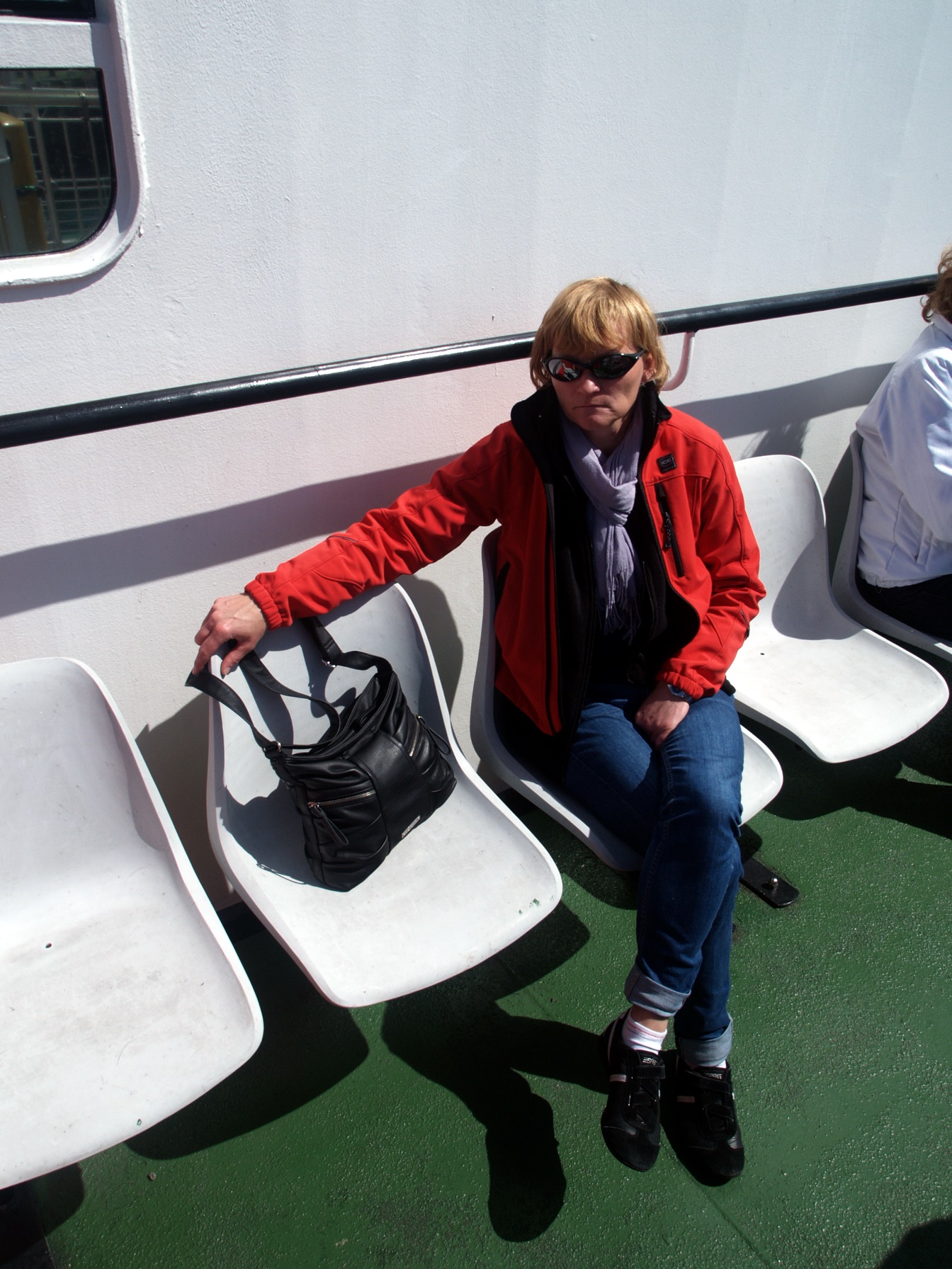 Die Überfahrt mit der Fähre dauert dann nicht mal 30 Minuten und wir genießen die Sonne und die Wärme an einem windstillen Platz.