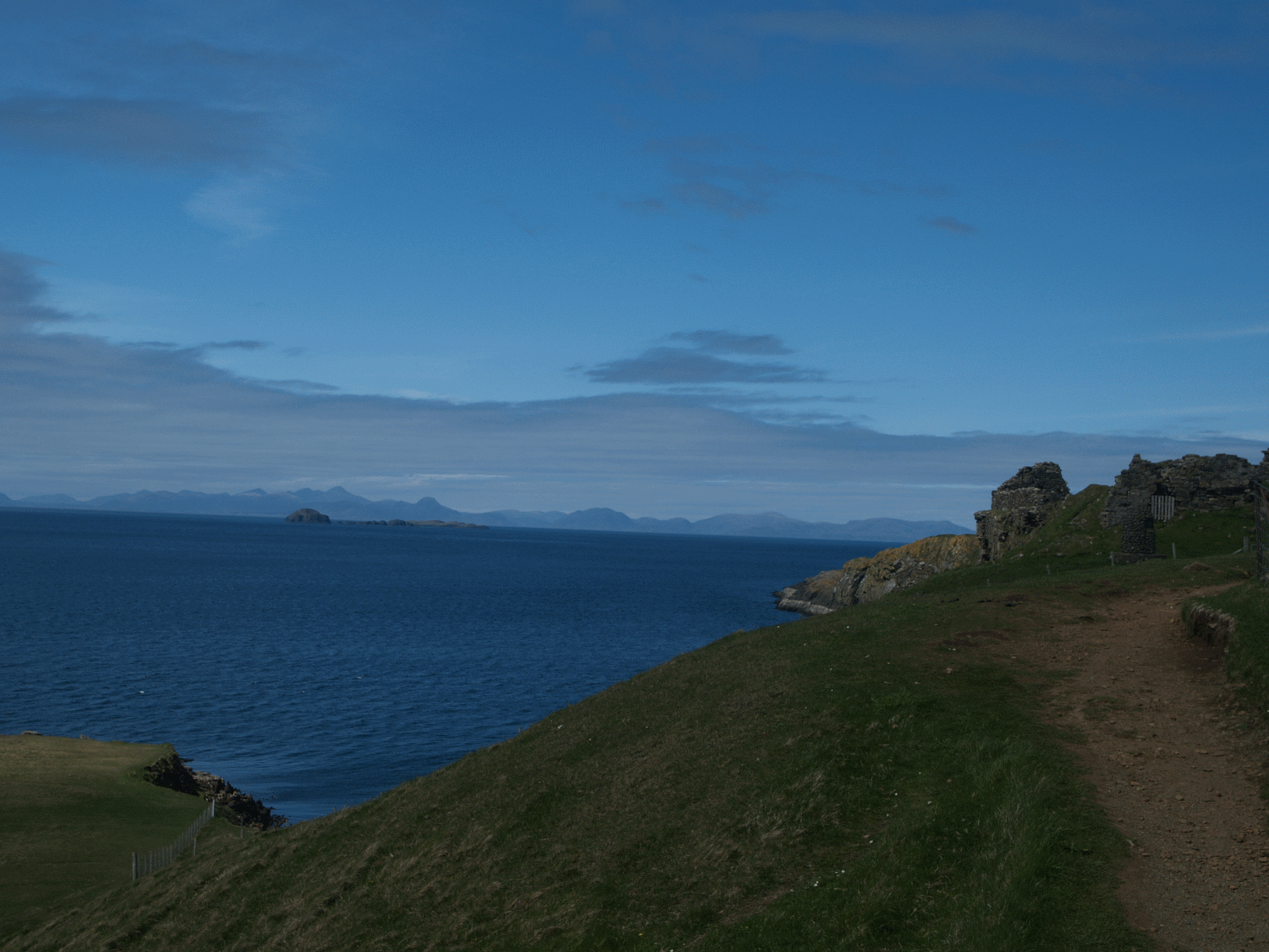 Später kommen wir dann noch im Nordosten von Skye an der uralten Ruine von Dulumtum Castle vorbei.