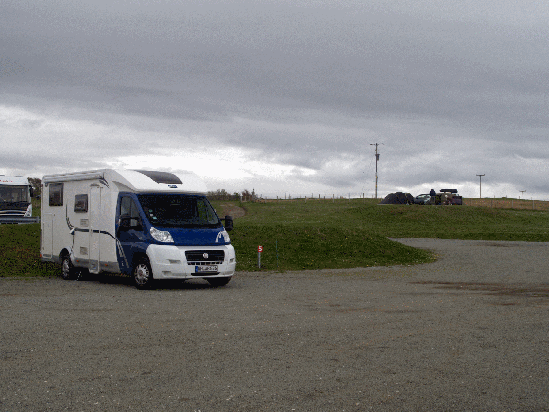 Am Ortsrand von Dunvegan finden wir einen Campingplatz, der wieder schön an einer Bucht liegt. Der Mann von der Rezeption geht mit mir zum Stellplatz und zeigt mir alles. Auf meine Aussage hin, daß es hier sehr schön ist, meinte er lächelnd, ich soll lieber bis Morgen Früh warten, denn in der Nacht kommt ein heftiger Sturm. Später stellen sich dann noch eine Frau und ein Mann aus Australien neben uns. Sie sind bestimmt schon über 70 und sie sind seit einem Jahr mit einem Camper aus Australien bis hierher unterwegs, sie möchten die Wurzeln ihrer Familien sehen. Da sie in ihrem Camper kein Platz zum kochen haben, erledigen sie das bei beginnenden Regen im Abspühlraum. Da wir dort auch gerade beim spülen sind, vergeht der frühe Abend bei einem interessanten Gespräch.